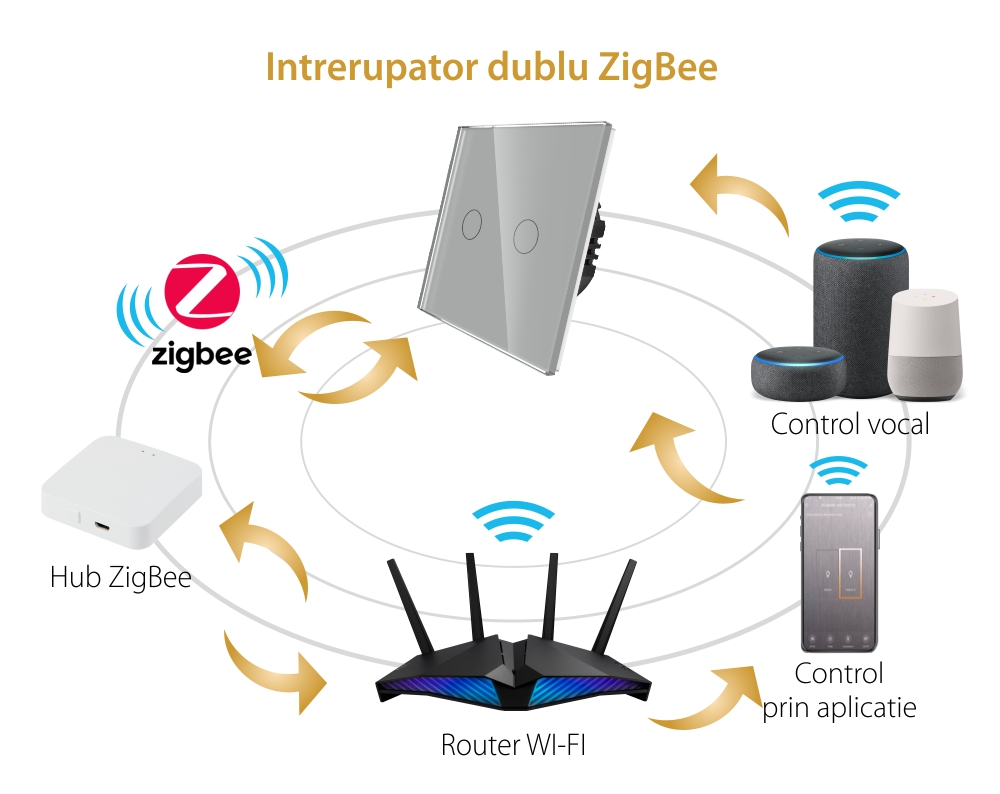 Intrerupator Dublu cu Touch din Sticla LUXION, protocol ZigBee SmartElectro IntelligentHouse