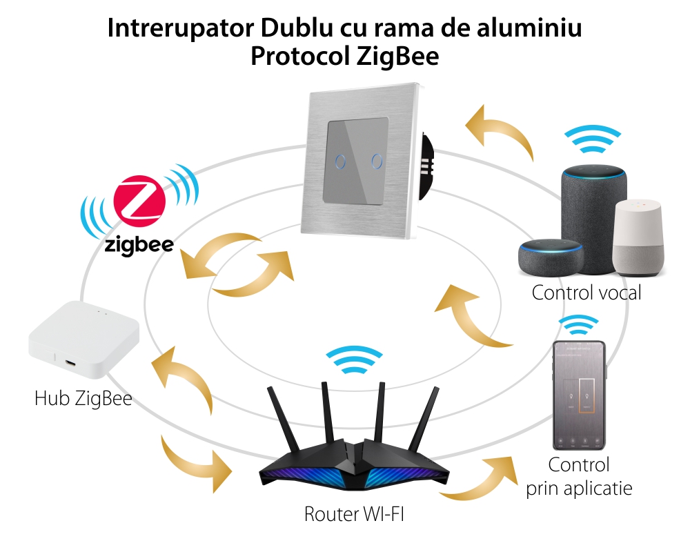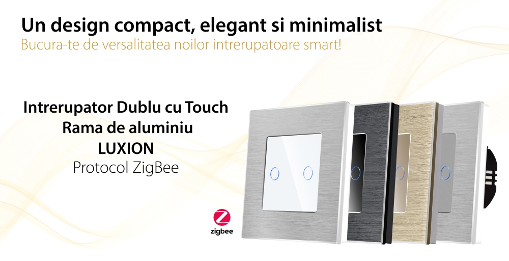 Intrerupator Dublu cu Touch din Sticla si Rama de Aluminiu LUXION, protocol ZigBee SmartElectro IntelligentHouse