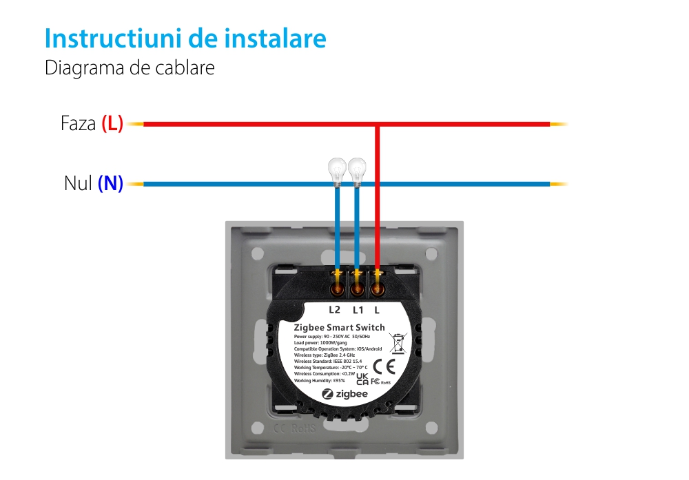 Specificatii Intrerupator Dublu Touch Sticla Rama Aluminiu