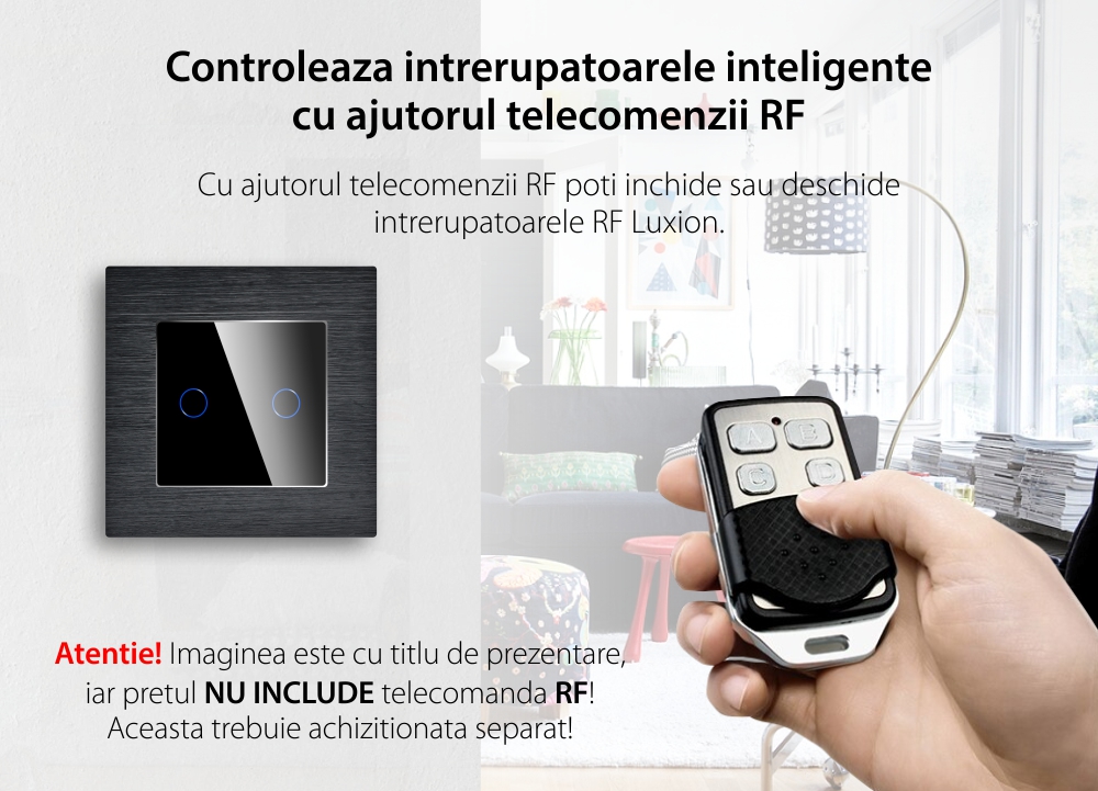Intrerupator Dublu cu Touch din Sticla si Rama de Aluminiu LUXION, RF433 SmartElectro IntelligentHouse