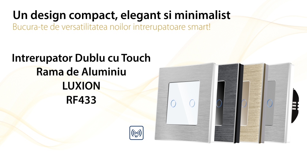 Intrerupator Dublu cu Touch din Sticla si Rama de Aluminiu LUXION, RF433 SmartElectro IntelligentHouse