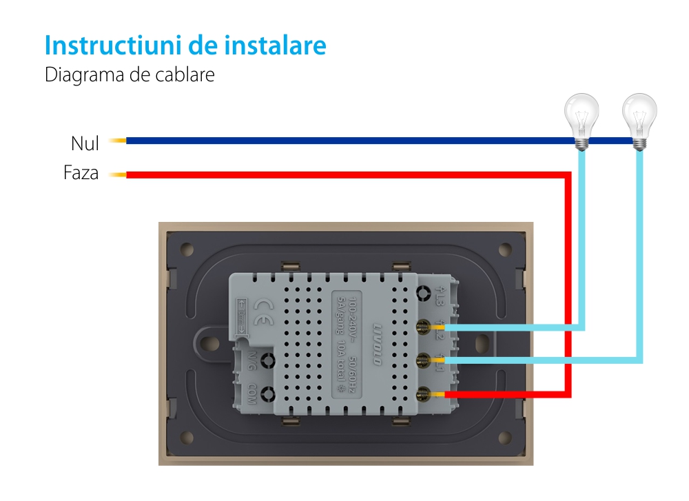 Specificatii Intrerupator dublu touch Livolo rama sticla,