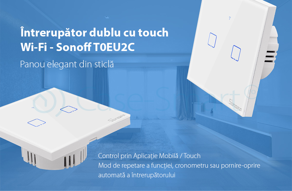 Intrerupator dublu cu touch Sonoff T0EU2C, Wi-Fi, Control de pe telefonul mobil SmartElectro IntelligentHouse