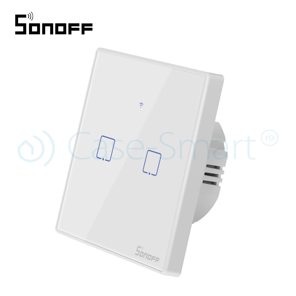 Intrerupator dublu cu touch Sonoff T2EU2C, Wi-Fi + RF, Control de pe telefonul mobil SmartElectro IntelligentHouse