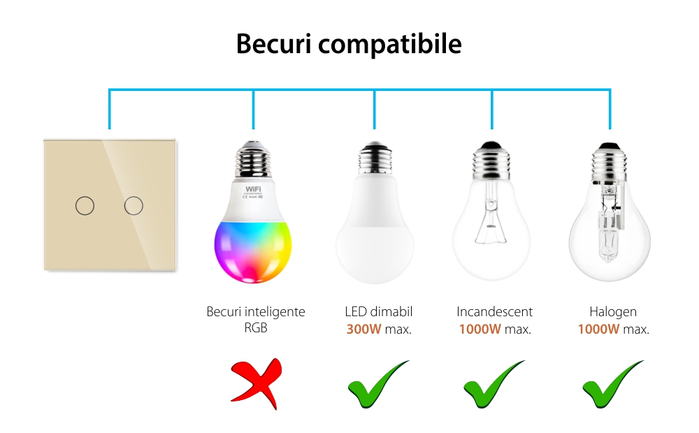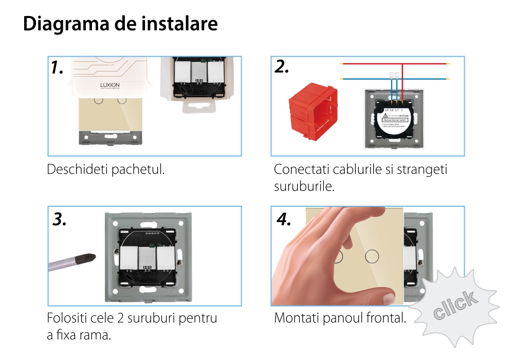 Specificatii Intrerupator Dublu Variator Touch Sticla LUXION,