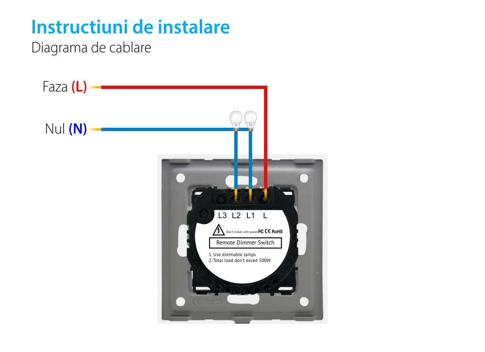 Specificatii Intrerupator Dublu Variator Touch Sticla Rama