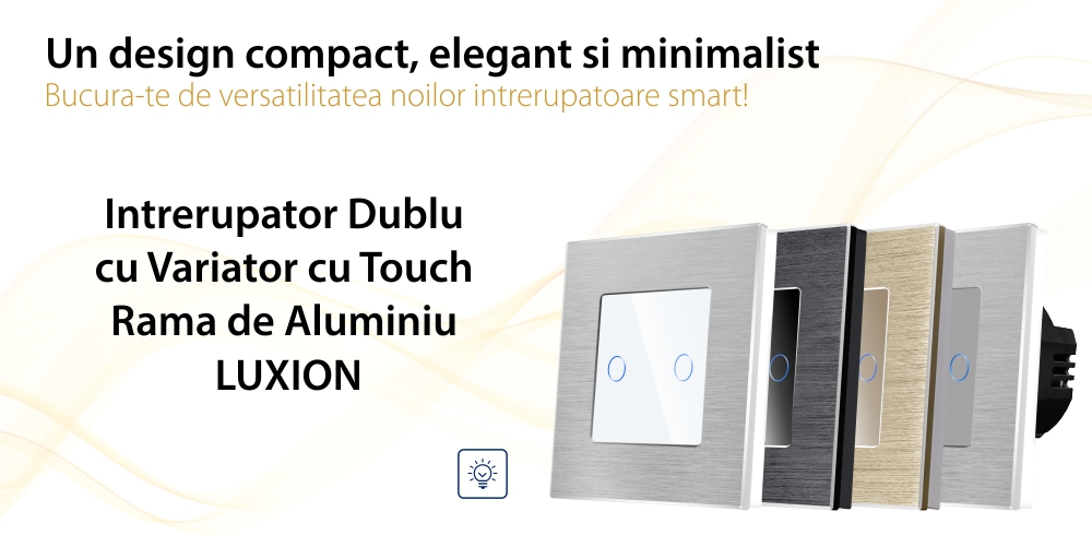 Intrerupator Dublu cu Variator si Touch din Sticla si Rama de Aluminiu LUXION SmartElectro IntelligentHouse