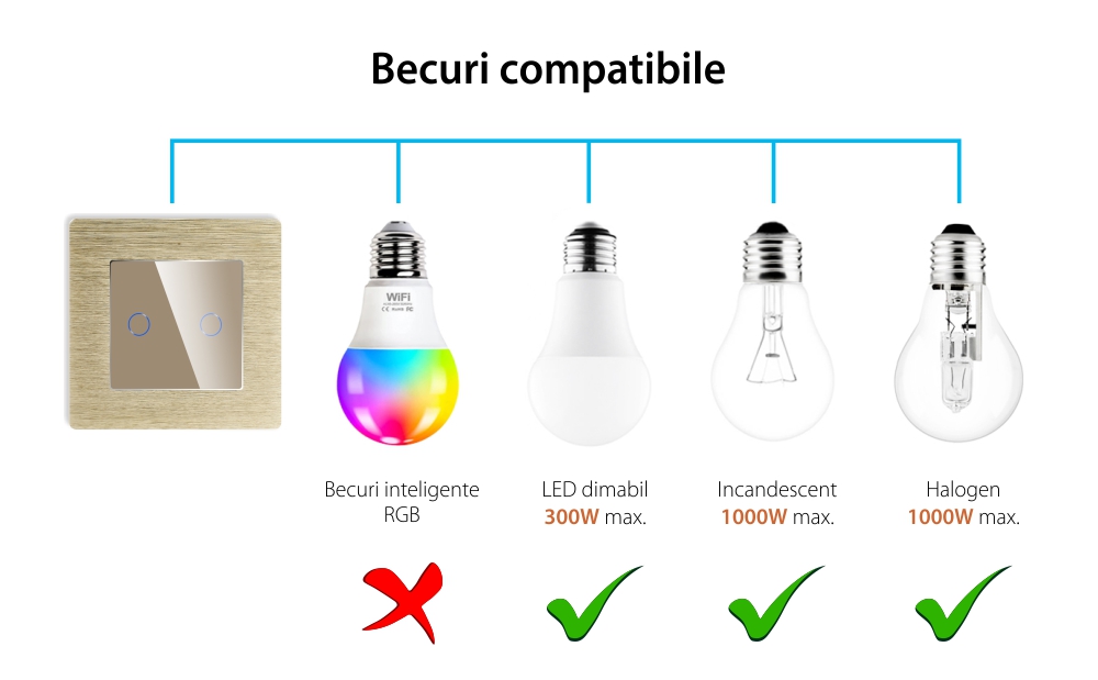 Specificatii Intrerupator Dublu Variator Touch Sticla Rama