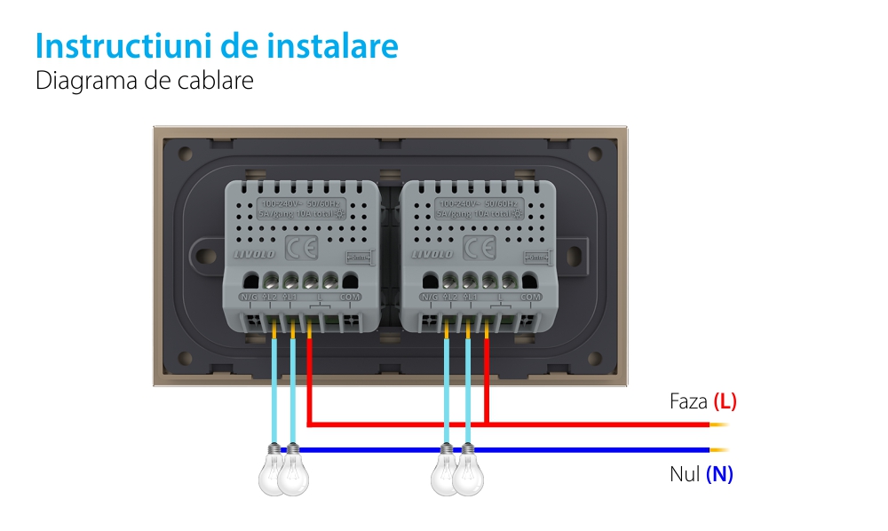 Specificatii Intrerupator Dublu + Dublu Touch LIVOLO