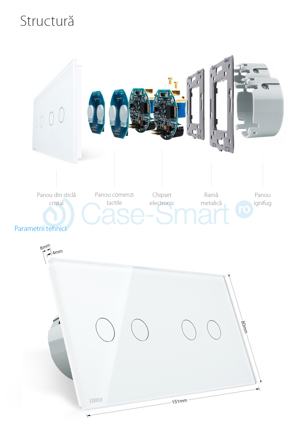 Intrerupator dublu + dublu cu touch Livolo din sticla SmartElectro IntelligentHouse