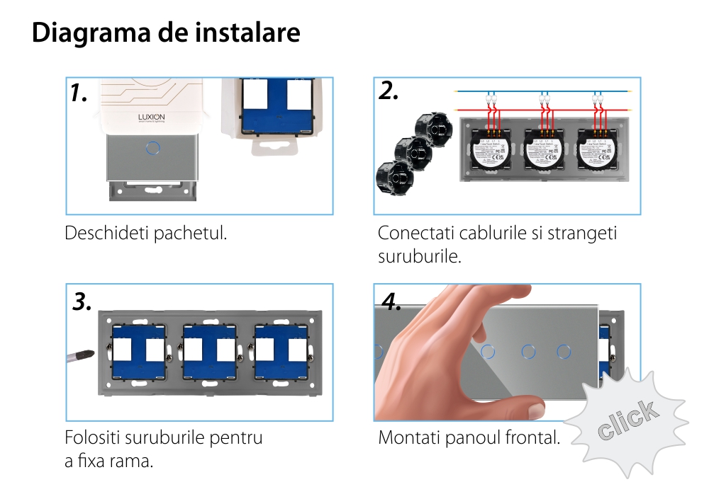 Intrerupator Dublu + Dublu + Dublu cu Touch din Sticla LUXION SmartElectro IntelligentHouse