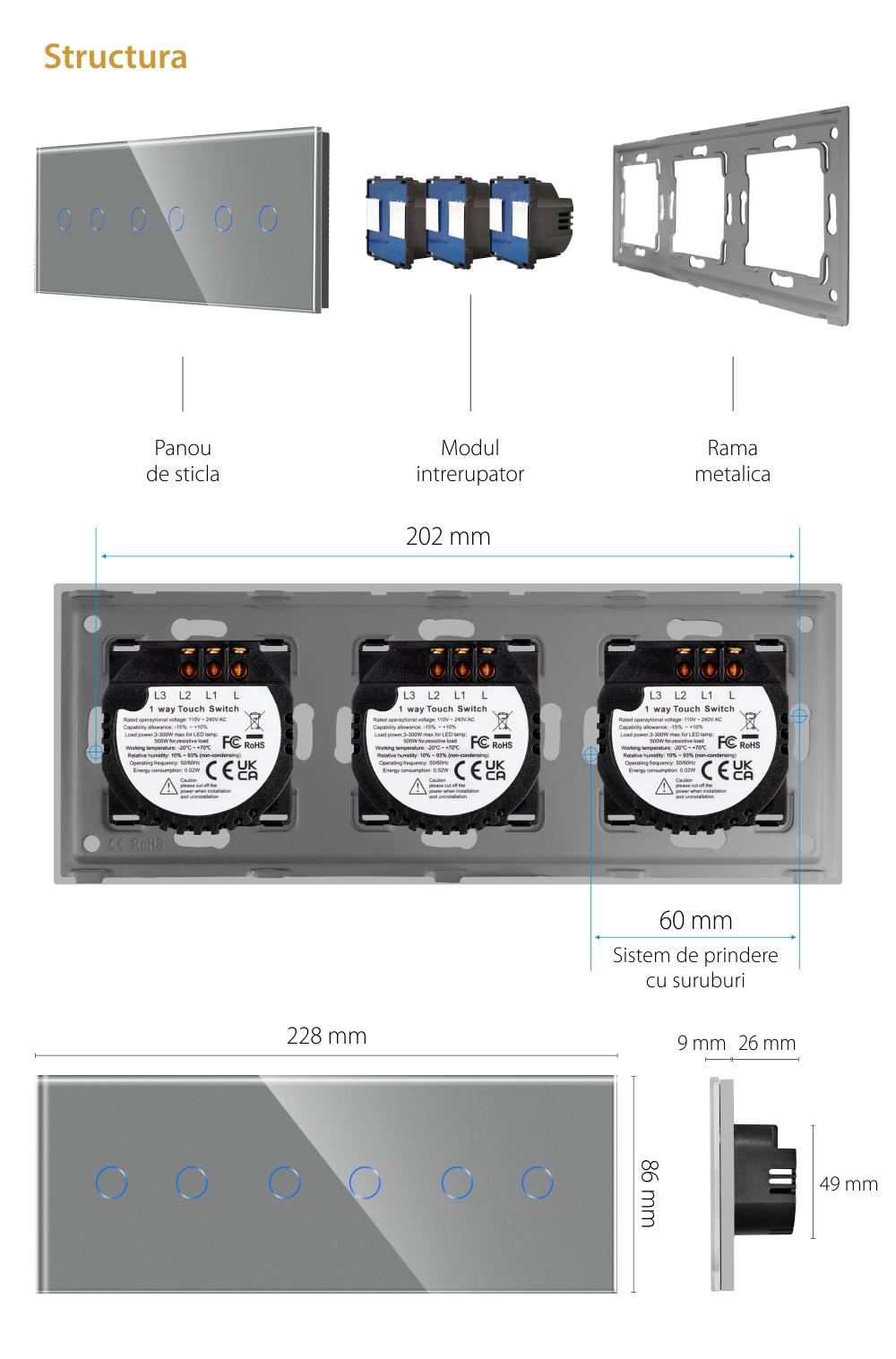 Intrerupator Dublu + Dublu + Dublu cu Touch din Sticla LUXION SmartElectro IntelligentHouse