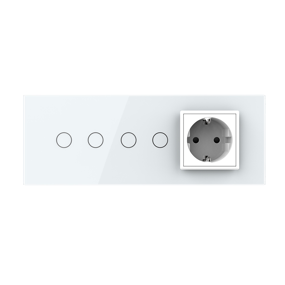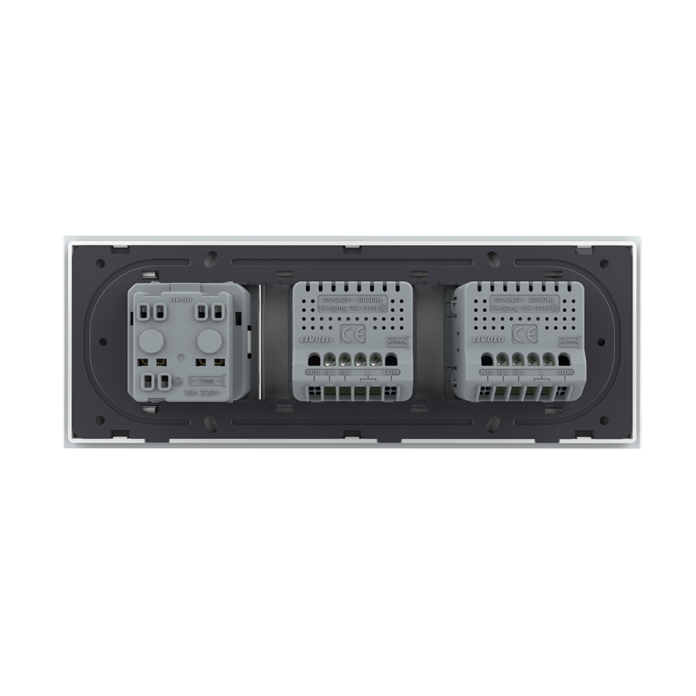 Intrerupator Dublu + Dublu + Priza LIVOLO cu Rama Din Sticla, Standard Italian, 6M SmartElectro IntelligentHouse