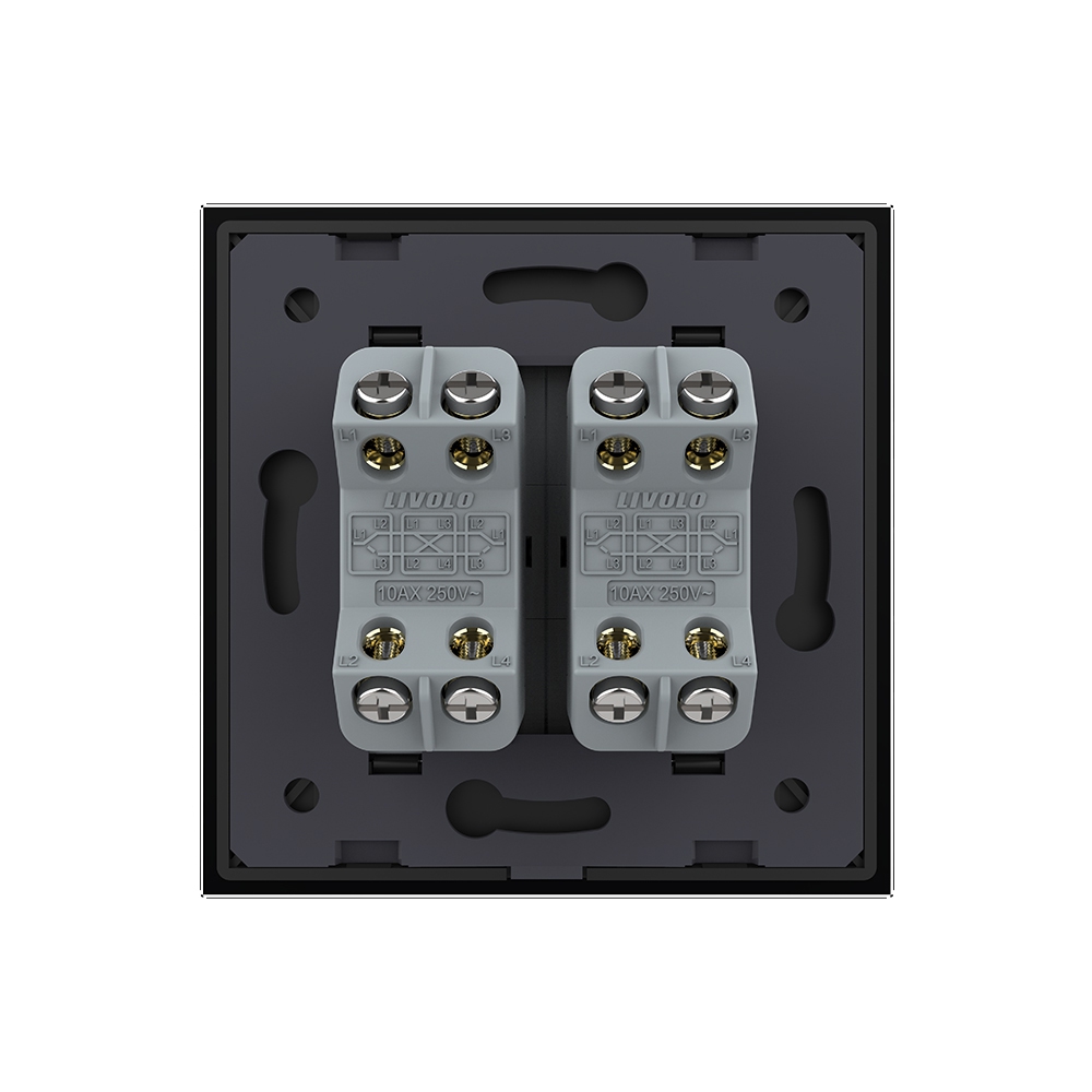 Intrerupator Dublu Mecanic Cap Cruce LIVOLO cu Rama din Sticla - Serie Noua SmartElectro IntelligentHouse