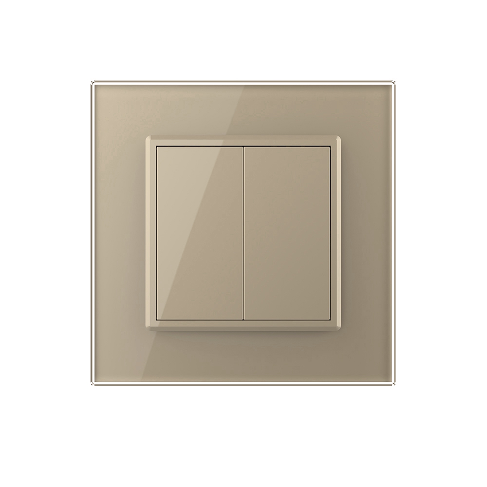 Intrerupator Dublu Mecanic Cap Cruce LIVOLO cu Rama din Sticla - Serie Noua SmartElectro IntelligentHouse