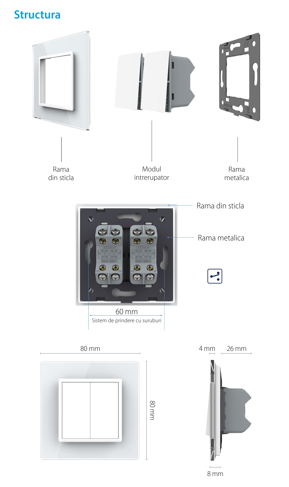 Specificatii Intrerupator Dublu Mecanic Cap Cruce LIVOLO