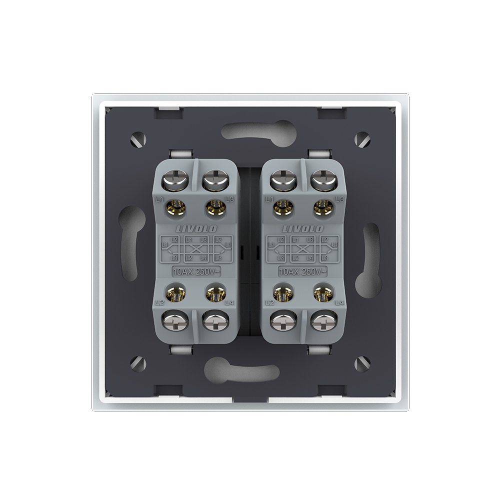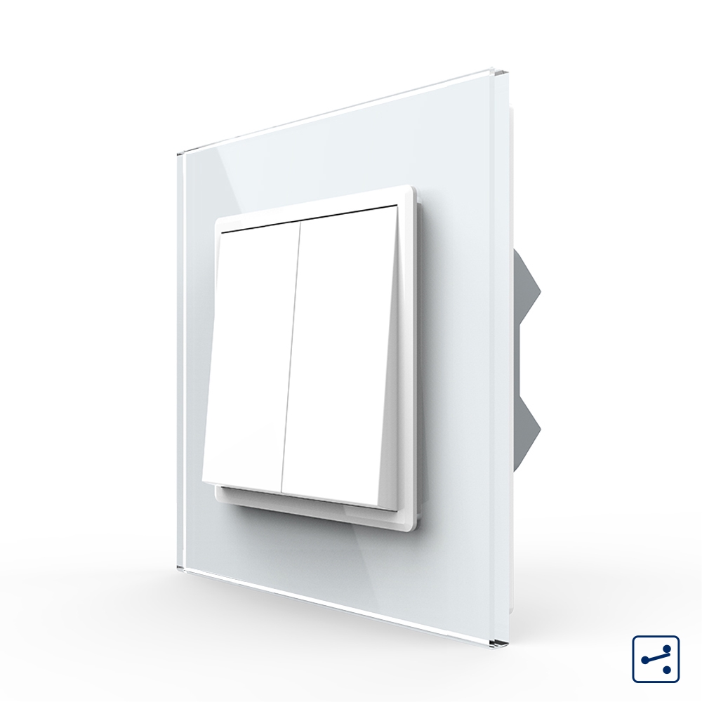Intrerupator Dublu Mecanic Cap Cruce LIVOLO cu Rama din Sticla - Serie Noua SmartElectro IntelligentHouse