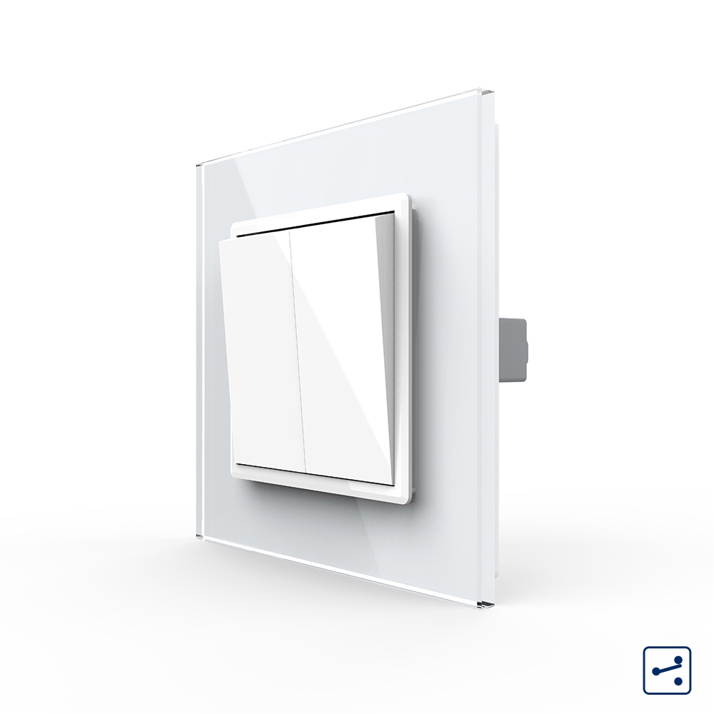 Intrerupator Dublu Mecanic Cap Scara LIVOLO cu Rama din Sticla - Serie Noua SmartElectro IntelligentHouse