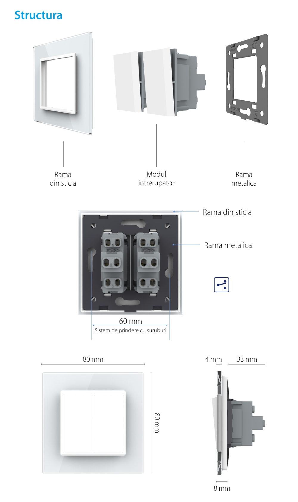 Specificatii Intrerupator Dublu Mecanic Cap Scara LIVOLO