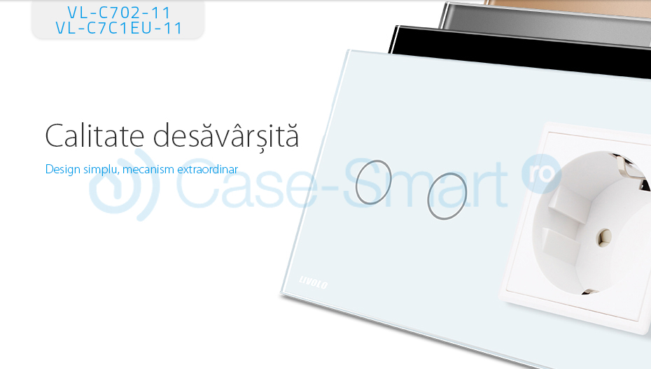 Intrerupator dublu + priza simpla Livolo rama din sticla SmartElectro IntelligentHouse