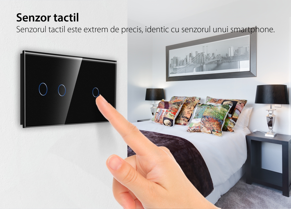 Intrerupator Dublu + Simplu cu Touch din Sticla LUXION SmartElectro IntelligentHouse