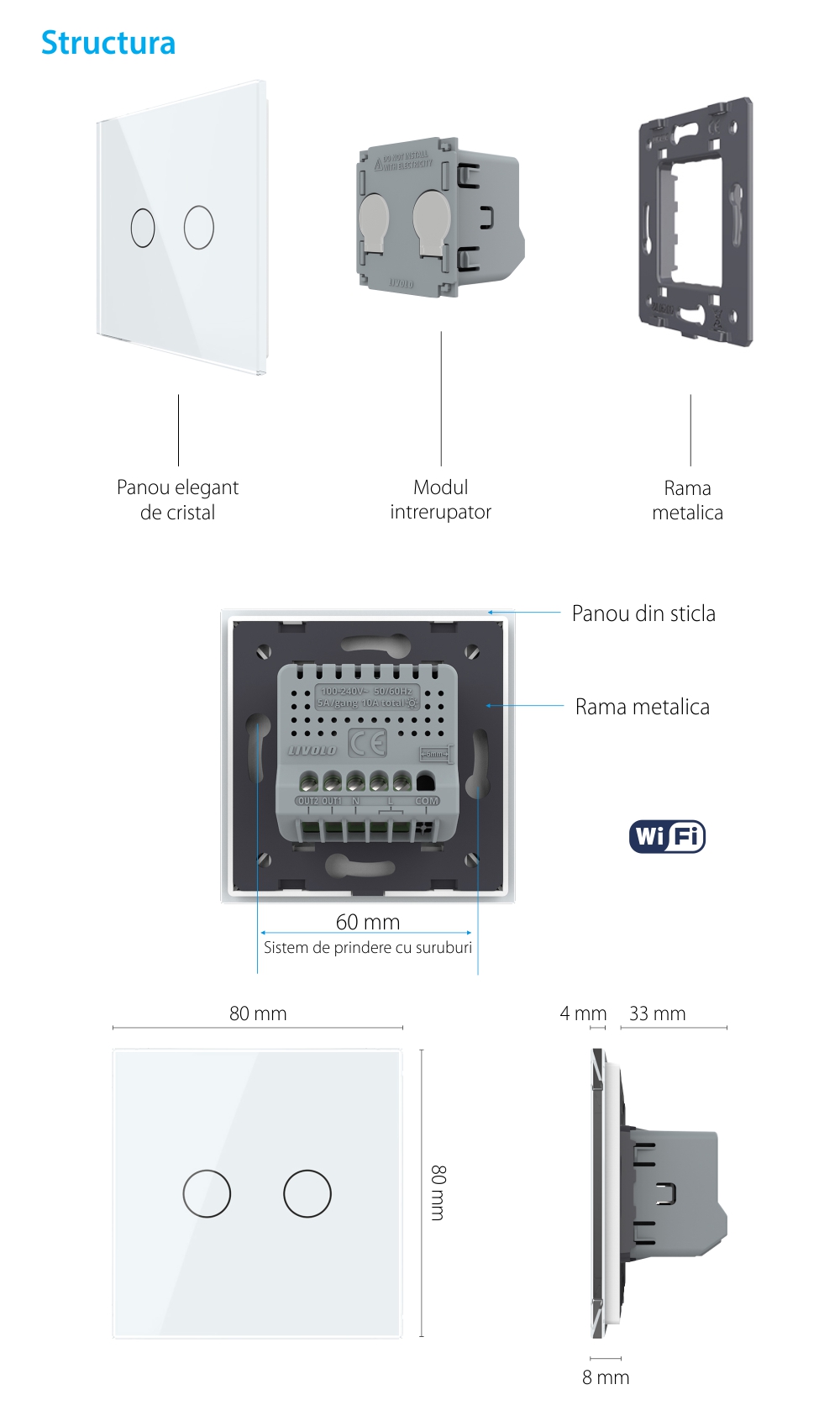 Specificatii Intrerupator Dublu Wi-Fi Touch LIVOLO Sticla