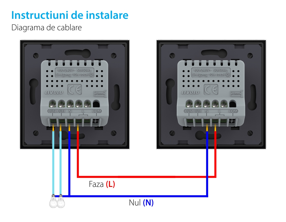Intrerupatorul dublu Wi-Fi cu touch LIVOLO din seria noua este un produs imbunatatit si inovator ce vine ca rezultat al tehnologiei dezvoltate in ani de studii si cercetari. Este un produs practic, fabricat din materiale de calitate si rezistent in timp, ce ofera utilitate si confort casei tale. Se monteaza in doza rotunda sau patrata cu distanta dintre suruburi 60mm. Intrerupatoarele LIVOLO Wi-Fi se conecteaza direct la routerul Wi-Fi, fara a mai necesita vreun hub. Au nevoie de alimentare cu nul pentru a functiona Pentru controlul din aplicatie, este necesara instalarea aplicatiei LIVOLO HOME. Imbunatatiri fata de seria veche: → Compatibilitate cu mai multe tipuri de becuri → Timp de raspuns mai rapid la actionarea touch-ului → Chip mai puternic si robust - fabricat in Japonia → Consum de energie redus in stand-by → Design compact ( dimensiuni reduse fata de modelul anterior ) → Tensiune maxima suportata de 5A / circuit