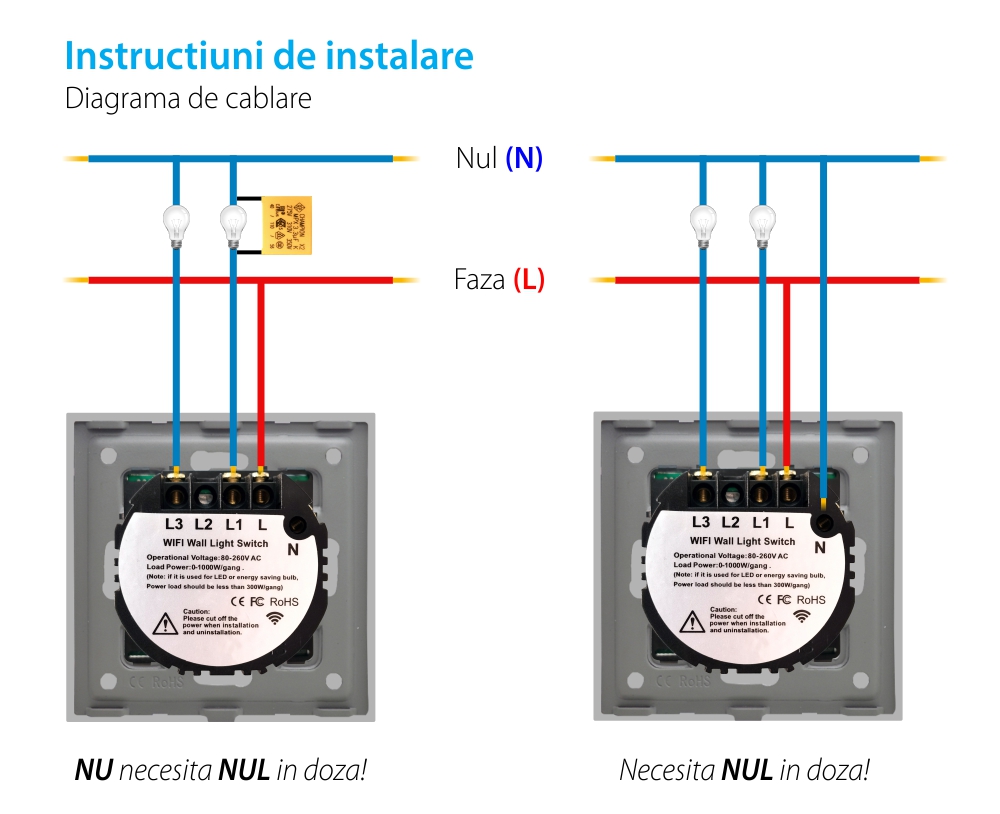 Specificatii Intrerupator Dublu Wi-Fi + RF433 Touch