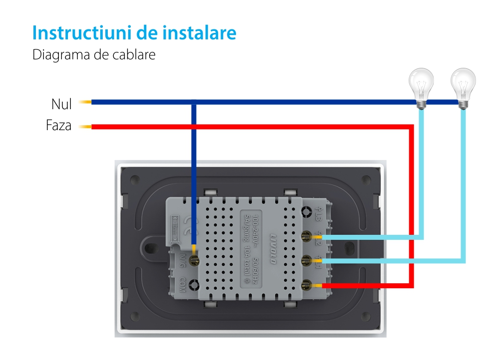 Specificatii Intrerupator Dublu WIFI Touch LIVOLO rama
