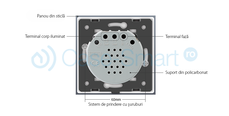 Specificatii Intrerupator LIVOLO touch sticla 5 intrerupatoare