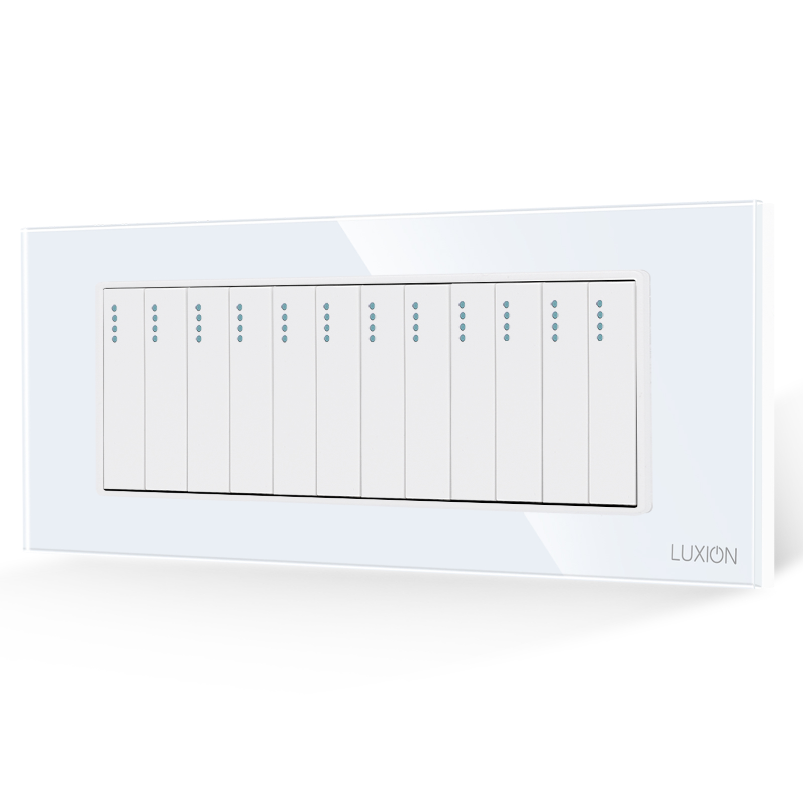 Intrerupator mecanic cu 12 posturi LUXION cu rama din sticla, 6M - standard Italian - solutia ideala pentru casa sau spatiul tau. Bucura-te de un design rafinat si functional, cu atentie la detalii. LUXION se integreaza perfect in orice mediu. Astfel poate fi montat nu doar in casa, ci si in spatii precum: birouri si spatii comerciale, spatii HoReCa, showroom-uri si sali de prezentare, depozite si spatii industriale moderne, cladiri rezidentiale sau de birouri.
