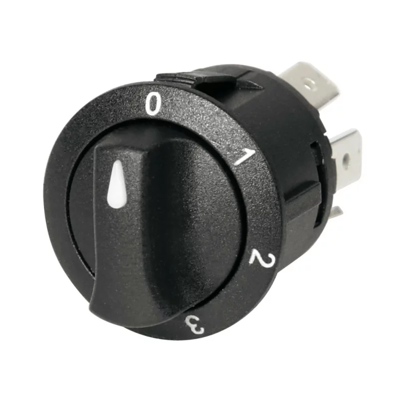 Produsul este conceput pentru montaj ingropat universal, fiind o solutie practica atunci cand ai nevoie de selectie clara intre mai multe trepte sau functii. Constructia compacta si finisajul negru il fac usor de integrat in borduri, panouri de comanda sau console.