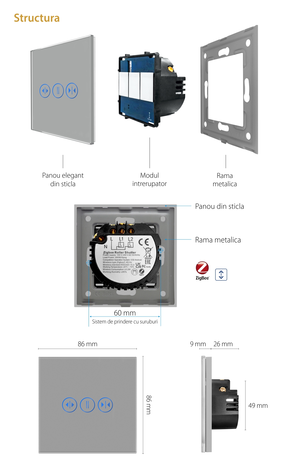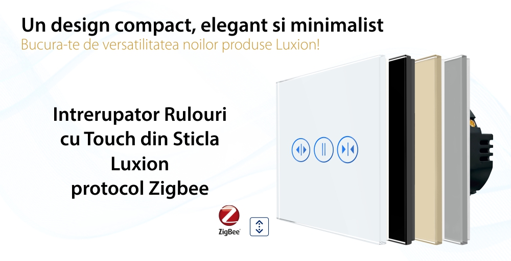 Intrerupator Rulouri cu Touch din Sticla LUXION, Protocol Zigbee Tuya SmartElectro IntelligentHouse