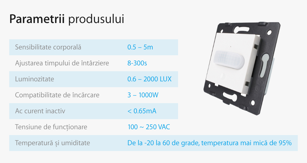 Specificatii Intrerupator senzor miscare PIR Livolo rama