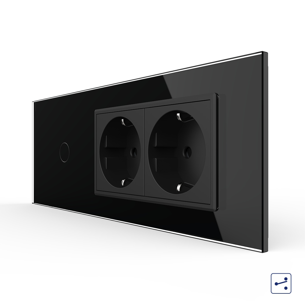Intrerupator Simplu Cap Scara / Cruce + 2 Prize LIVOLO cu Rama Din Sticla, Standard Italian, 6M SmartElectro IntelligentHouse