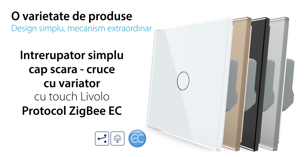 Intrerupator Simplu Cap Scara / Cruce cu Dimmer cu Touch LIVOLO din Sticla - Protocol ZigBee EC SmartElectro IntelligentHouse