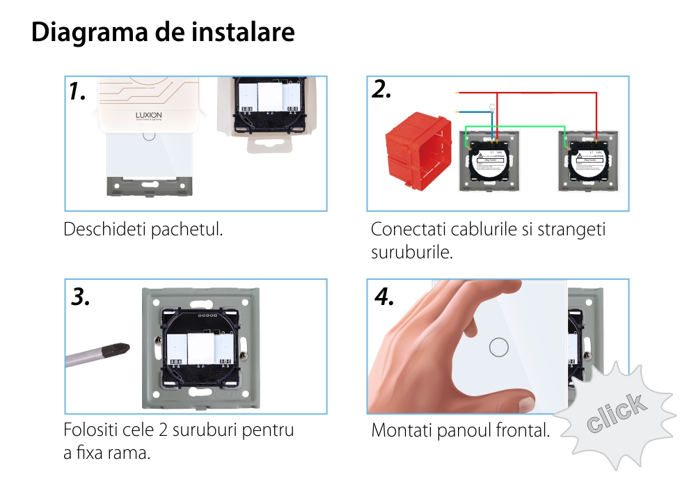 Intrerupator Simplu Cap Scara/Cruce cu Touch din Sticla LUXION, Serie A SmartElectro IntelligentHouse