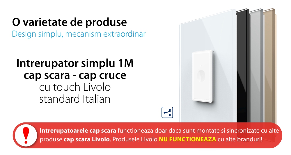 Intrerupator Simplu Cap Scara / Cruce cu Touch Livolo cu Rama Din Sticla 1M - Serie Noua SmartElectro IntelligentHouse