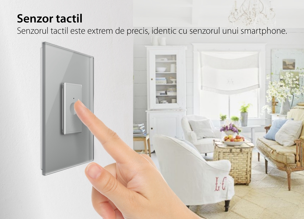 Intrerupator Simplu Cap Scara / Cruce cu Touch Livolo cu Rama Din Sticla 1M, Zigbee EC - Serie Noua SmartElectro IntelligentHouse