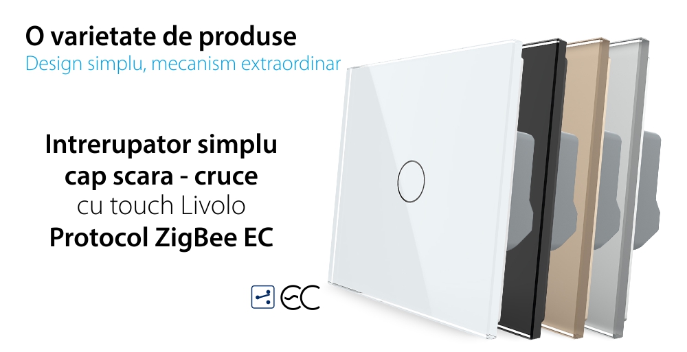 Intrerupator Simplu Cap Scara / Cruce cu Touch LIVOLO din Sticla - Protocol ZigBee EC SmartElectro IntelligentHouse
