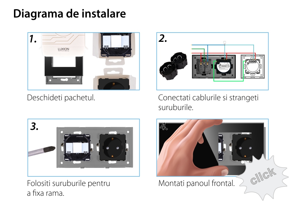 Intrerupator Simplu Cap Scara / Cruce + Priza cu Rama din Sticla LUXION, Serie A SmartElectro IntelligentHouse