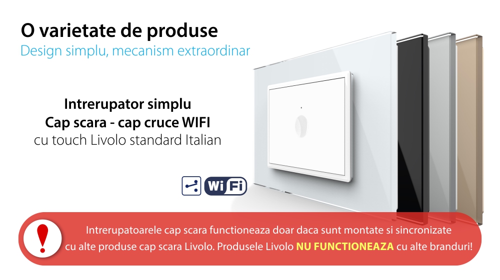 Intrerupator Simplu Cap Scara / Cruce Wi-Fi cu Touch LIVOLO cu Rama din Sticla, standard italian – Serie Noua SmartElectro IntelligentHouse
