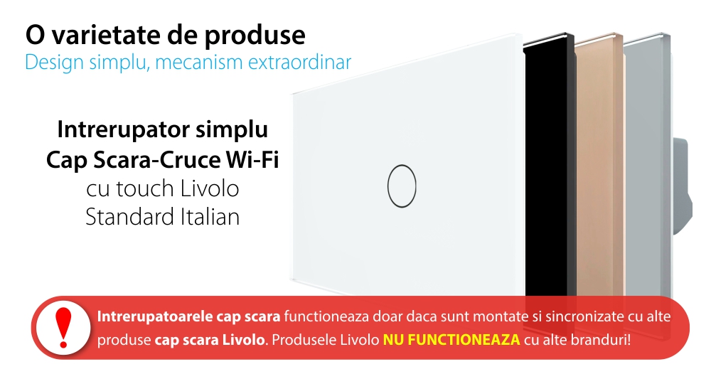 Intrerupator Simplu Cap Scara / Cruce Wi-Fi cu Touch LIVOLO, standard italian – Serie Noua SmartElectro IntelligentHouse