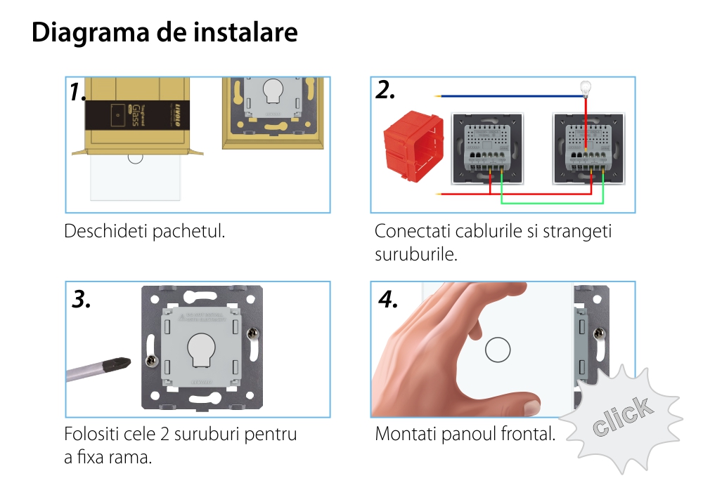 Specificatii Intrerupator Simplu Cap Scara, Dimmer Touch