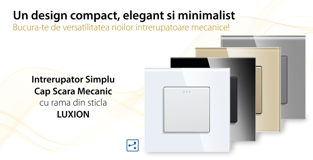 Intrerupator Simplu Cap Scara Mecanic LUXION cu Rama din Sticla SmartElectro IntelligentHouse