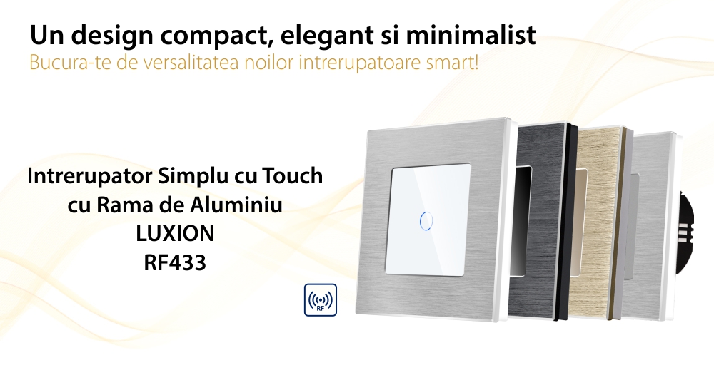 Intrerupator Simplu cu Touch din Sticla si Rama de Aluminiu LUXION, RF433 SmartElectro IntelligentHouse