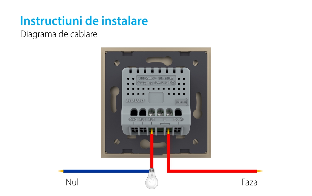 Specificatii Intrerupator Simplu Touch LIVOLO Rama Sticla