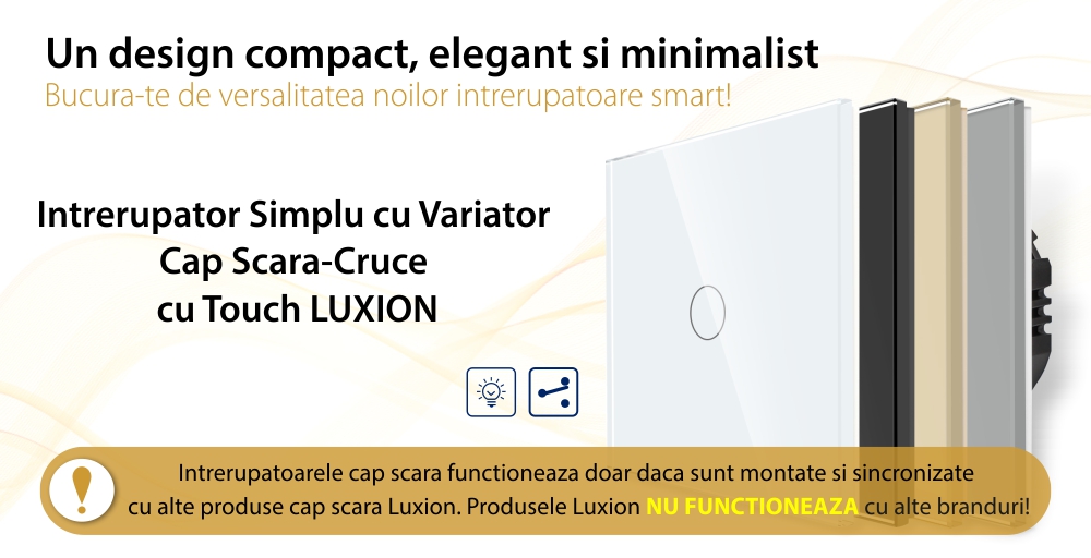 Intrerupator Simplu cu Variator Cap Scara / Cruce cu Touch din Sticla LUXION SmartElectro IntelligentHouse