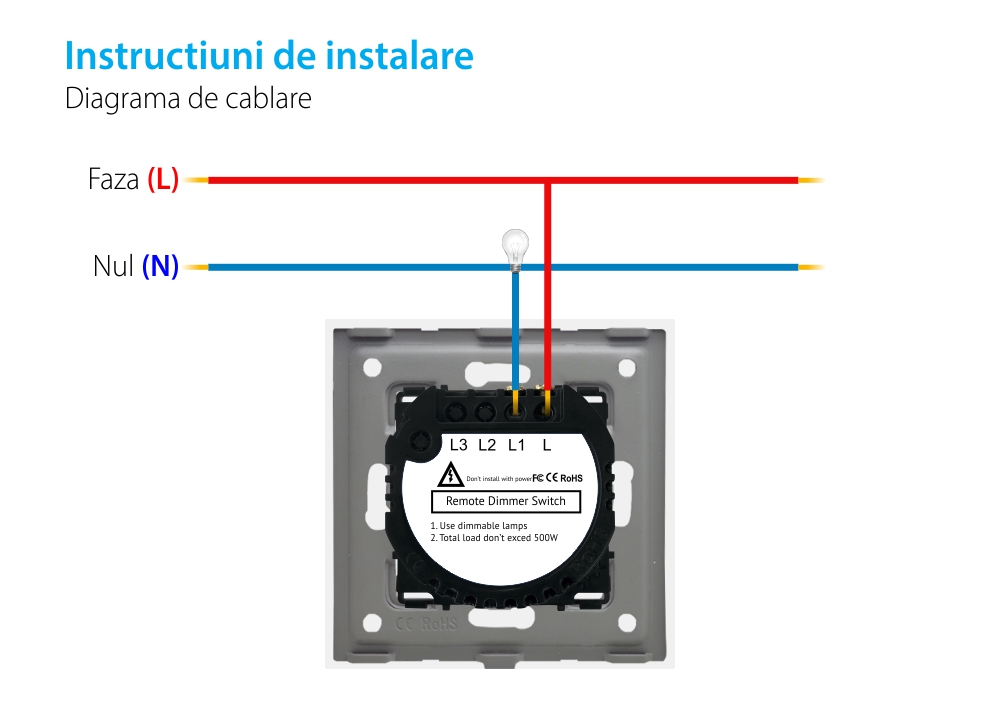 Specificatii Intrerupator Simplu Variator Touch Sticla LUXION,