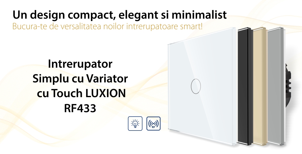 Intrerupator Simplu cu Variator cu Touch din Sticla LUXION, RF433 SmartElectro IntelligentHouse
